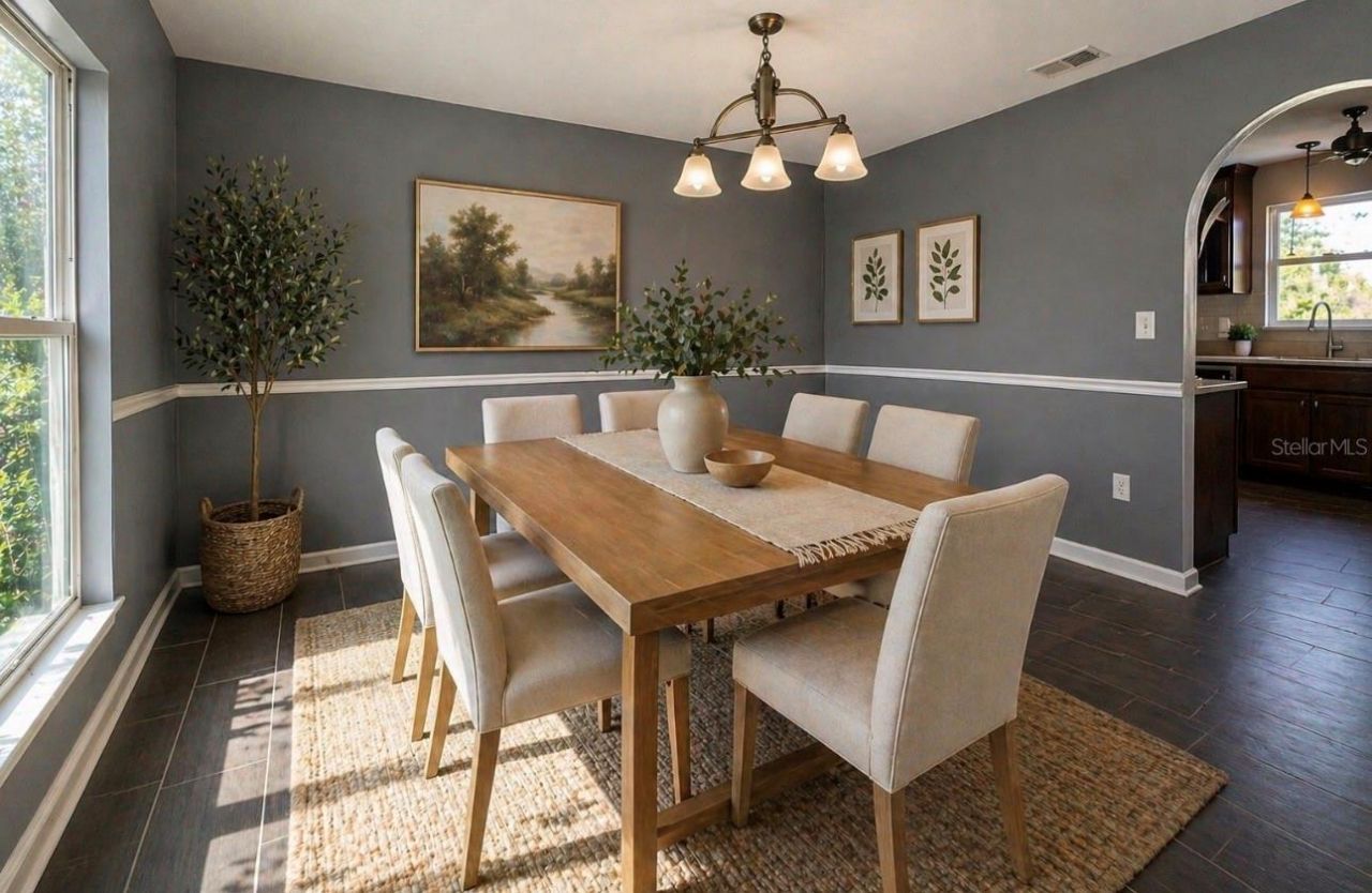 One or more photo(s) has been virtually staged. Welcome to comfort, space, and opportunity in the charming town of Groveland-known for its natural beauty and peaceful surroundings.This inviting two-story, 3-bedroom, 2-bath home sits on an oversized lot with no rear neighbors, offering privacy and flexibility for your lifestyle. Beautiful manicured landscaping enhances the curb appeal, while the fully fenced backyard opens to serene views-perfect for relaxing evenings or even catching a glimpse of a Cape Canaveral rocket launch. Tucked away in the quiet community of Lake dot landing, this home delivers the peaceful setting buyers are searching for. Step inside to soaring ceilings and a welcoming foyer that creates an immediate sense of openness. Just off the entry is a formal dining area, along with two versatile bonus rooms downstairs-ideal for a home office, playroom, or easily adaptable for multi-generational living. The open-concept kitchen, living, and dining areas flow seamlessly, creating a functional and comfortable space for everyday living and entertaining. The kitchen features abundant cabinetry, generous counter space, and a cozy dinette area for casual meals. Upstairs, the thoughtfully designed split-bedroom floor plan offers privacy, with two secondary bedrooms and a guest bath located opposite the primary suite. The guest rooms feature brand-new carpet, built-in closets, and ceiling fans throughout. The primary suite provides a private retreat with ample closet space and an en-suite bath featuring a stand-up shower. Warm, welcoming, and thoughtfully designed, this home offers both functionality and future potential-an excellent opportunity for buyers looking for space to grow. MLS Remarks: All information recorded in the MLS is intended to be accurate; however, buyers and their agents should independently verify all details. Some photos may be virtually staged.